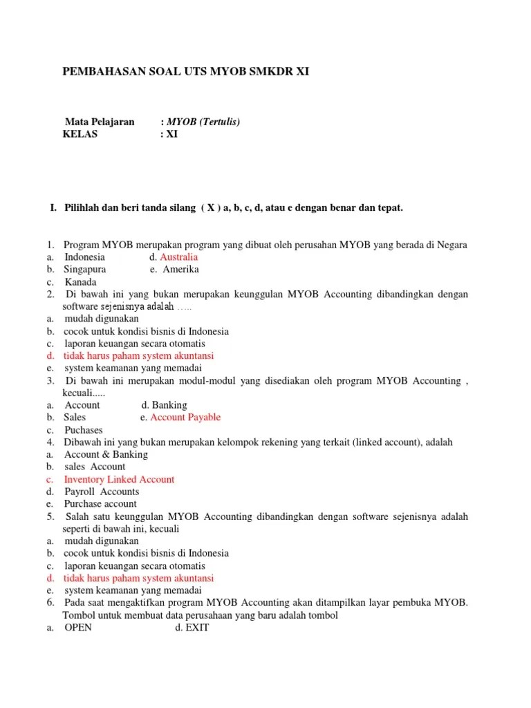 Latihan soal pilihan ganda materi myob beserta jawaban akun berikut ini yang merupakan akun kontra dan harus ditulis negatif dalam setu. soal jawab akuntansi lanjutan 2 √ jurnal penyesuaian: Bagaimana cara menjalankan program myob? soal un teori kejuruan akuntansi smk 2013. Dalam membangun satu bangunan yang sederhana dibutuhkan waktu selama 24 hari dan membutuhkan tenaga kerja sebanyak 12 orang.